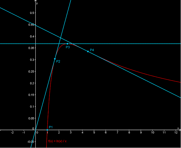 Montrer que les abscisses de ces points sont quatre termes consécutifs d’une suite géométrique dont on donnera la raison.