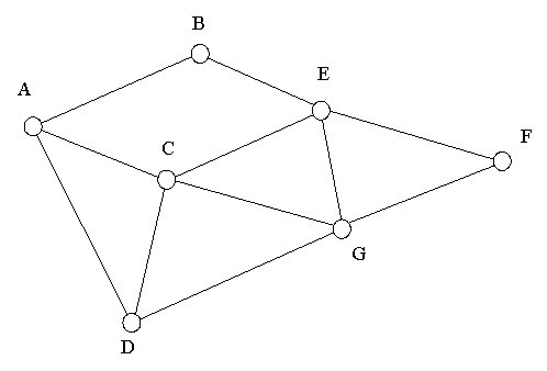 C, E, G (de degré 4), A et D (de degré 3), B et F (de degré 2).
