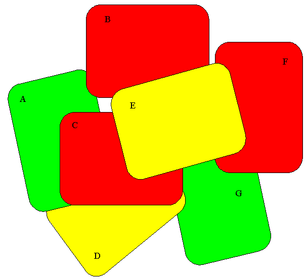 En raisonnant de façon analogue avec les sommets C et D, on en déduit que A et G sont de la même couleur.